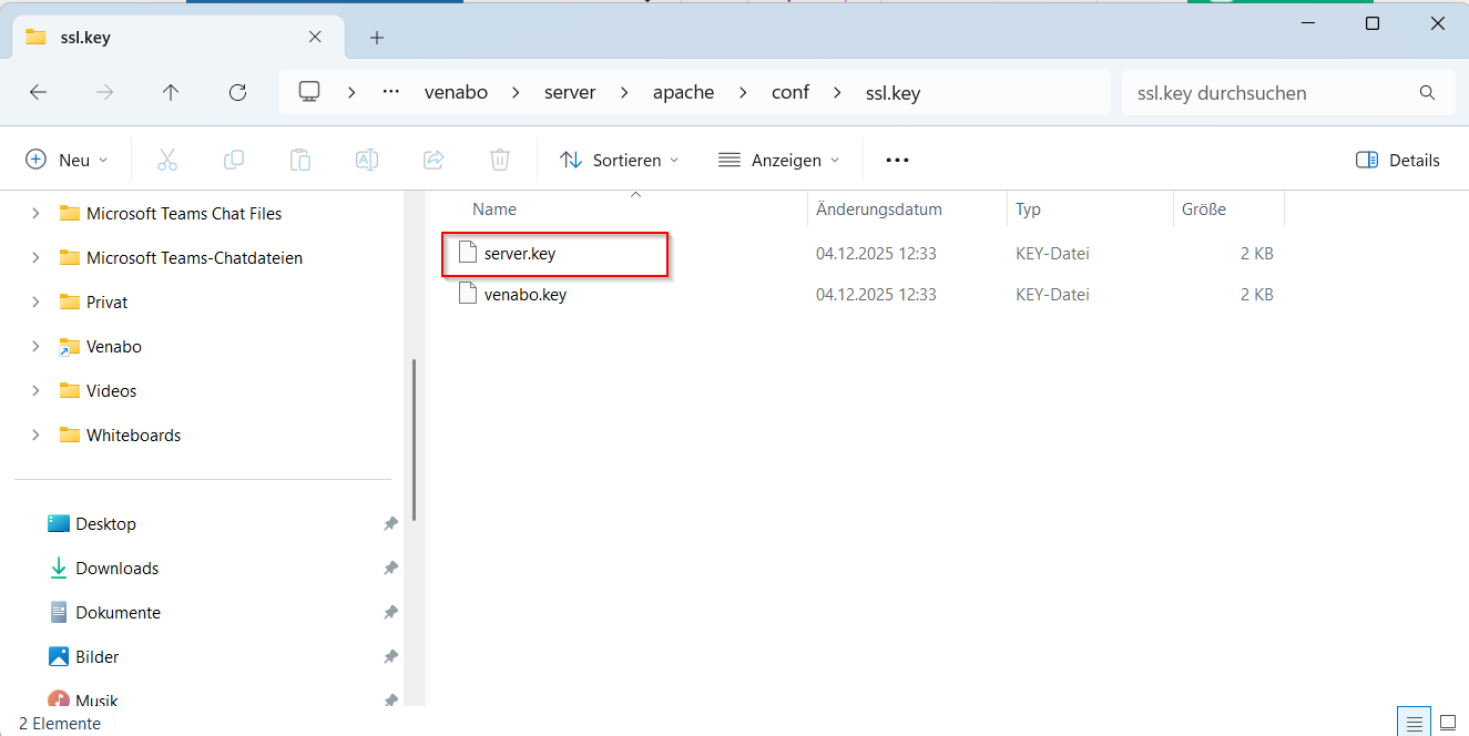 Lokaler Datenträger (C:) > Programme > venabo GmbH > venabo > server > apache > conf > ssl.key