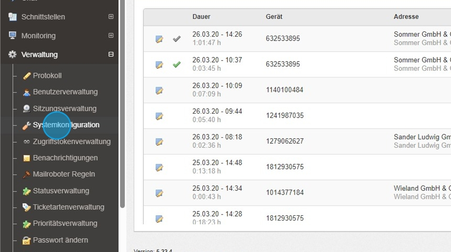 Im linken Bereich Ihrer venabo-Oberfläche finden Sie den Menüpunkt „Verwaltung“. Unter diesem Menüpunkt befindet sich in der hierarchischen Struktur der Punkt „Systemkonfiguration“, über den Sie alle Einstellungen erreichen können.