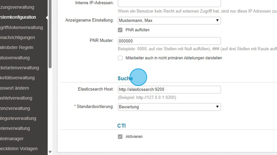 Im unteren Bereich des Reiters „Suche“ befindet sich der Suchserver ElasticSearch.
