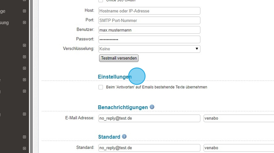 Einstellungen für E-Mail-Server