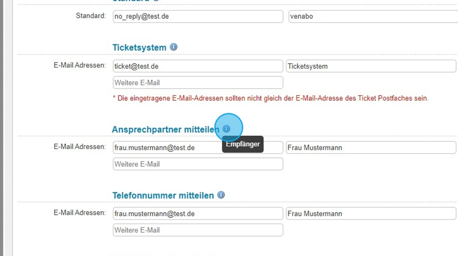 Die hier eingetragene Adresse darf nicht identisch mit dem Ticket-Postfach sein.
