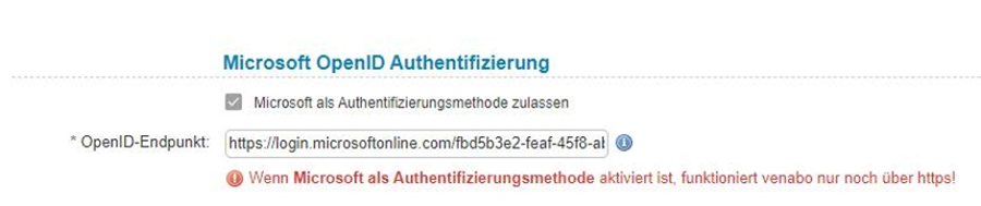 Hinterlegen Sie den OpenID-Endpunkt aus Ihrem M365-Konto. Dieser ist erforderlich, damit venabo die Authentifizierung korrekt durchführen kann. (Weitere Details siehe Schritt-für-Schritt-Anleitung.)
